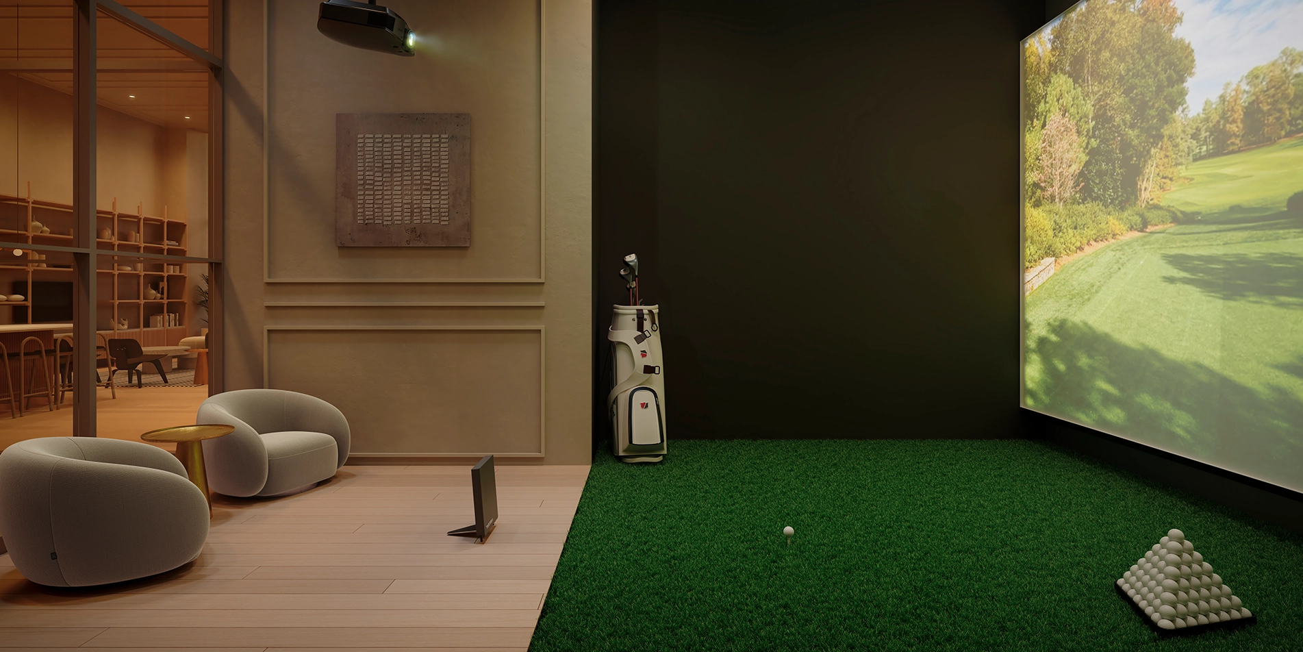 La experiencia del golf en cualquier momento. Permite juegos en un entorno virtual en el que los competidores se ven inmersos en un juego envolvente y realista.