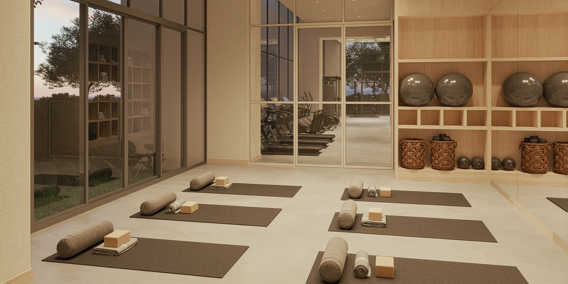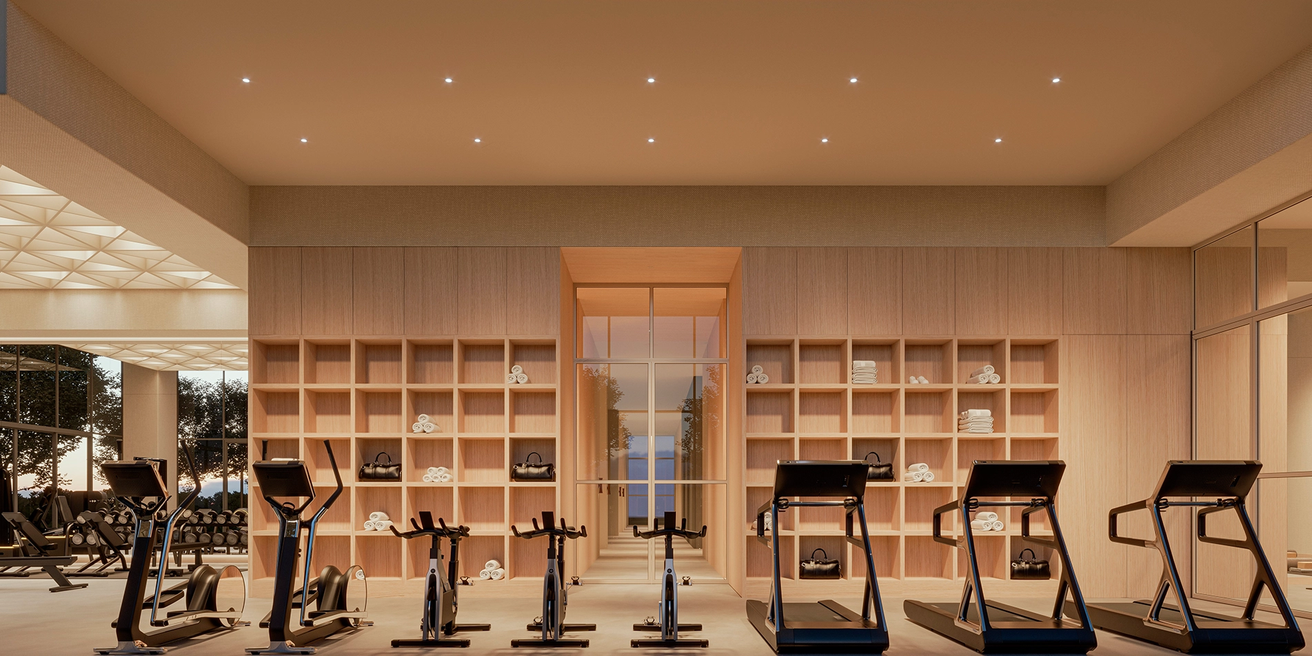 Bienestar físico. Con áreas de cardio, entrenamiento de fuerza y un salón para yoga y pilates, además de áreas de sauna separadas.