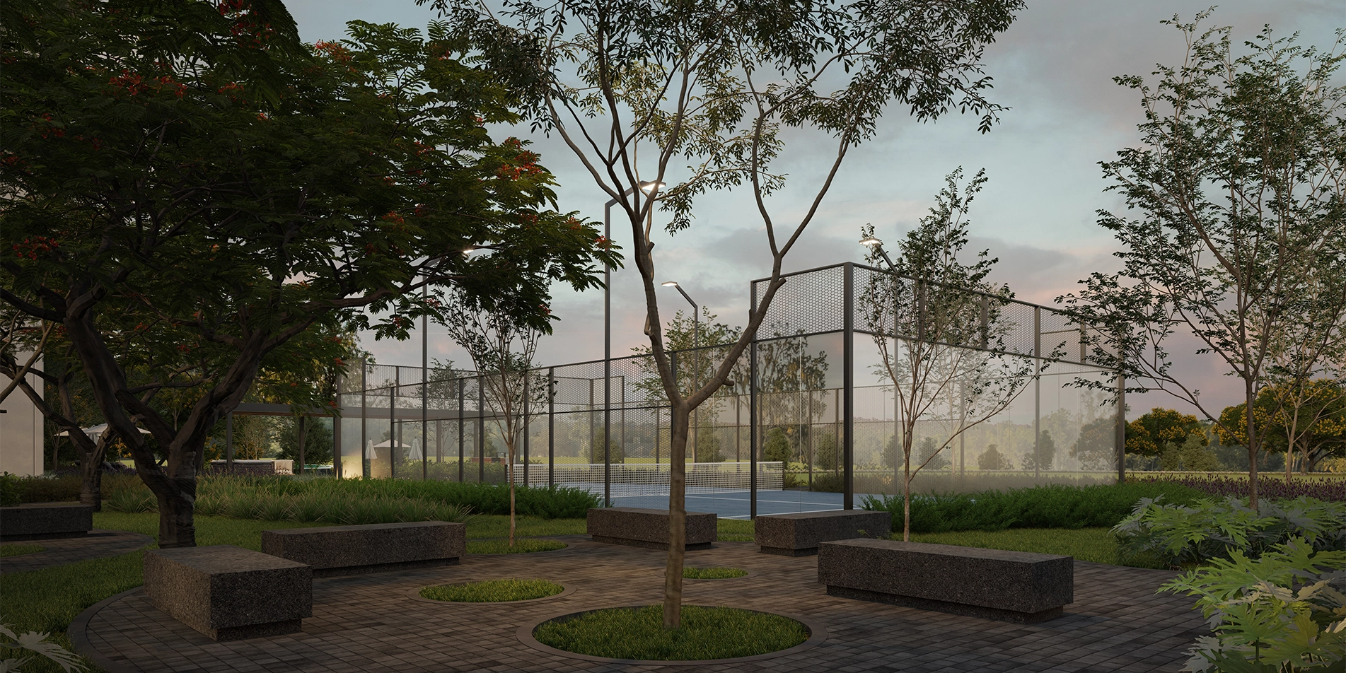 Dinamismo deportivo que eleva la experiencia del juego. Ambiente competitivo para los amantes del pádel. Con iluminación nocturna para disfrutar en cualquier horario.