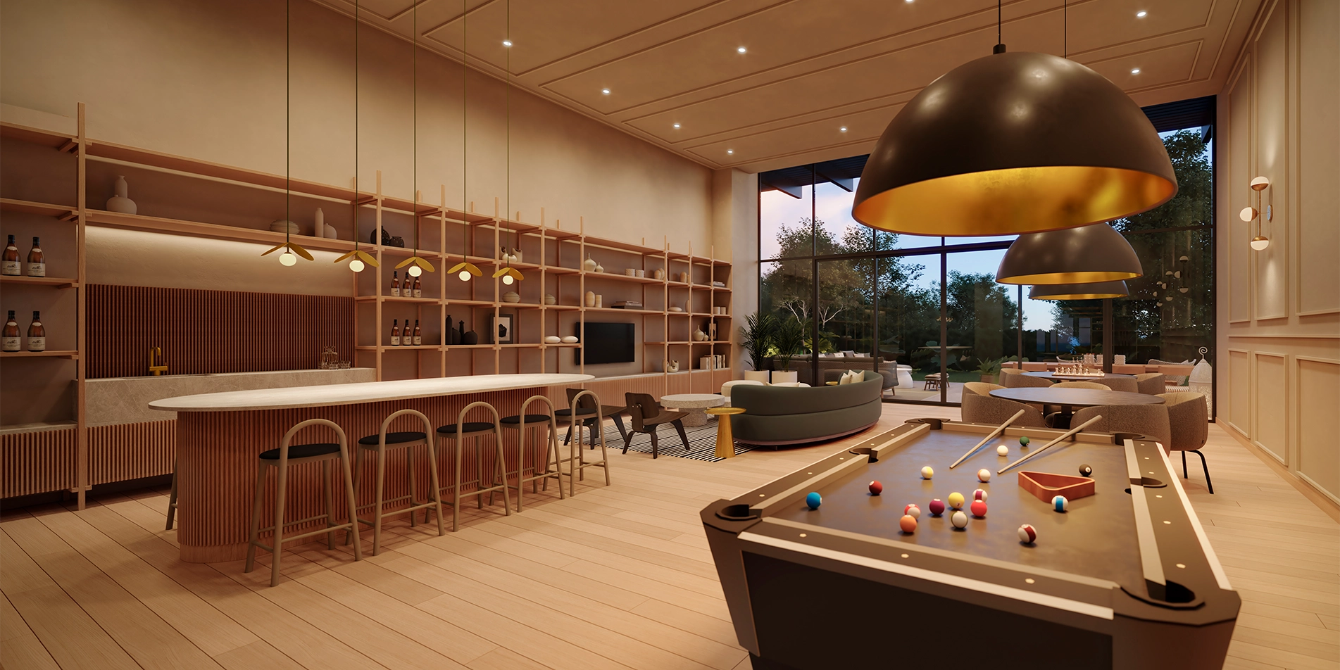 Momentos inolvidables con amigos y familia. Espacio acogedor con mesa de billar para emocionantes partidas, cómodo mobiliario ubicado para fomentar la interacción.